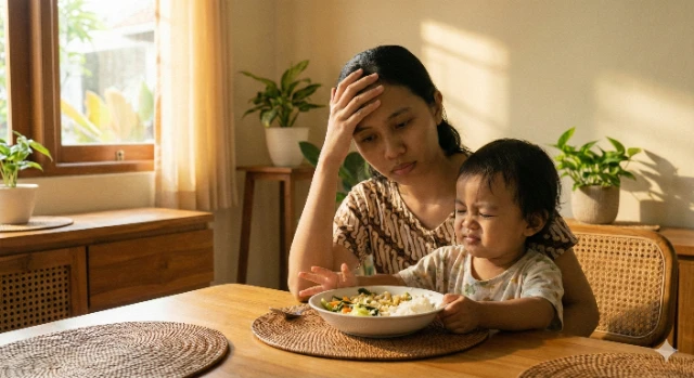 Apakah Bunda sering merasa lelah, sedih, dan diam-diam merasa gagal saat melihat piring makan anak masih utuh?